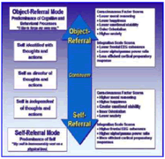 Travis, F., Arenander, A, and D. DuBois, Psychological and physiological characteristics of a proposed object-referral/self-referral continuum of self-awareness. Consciousness and Cognition, 13(2):401-420, 2004.
